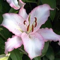 Заказав почтой луковицы лилий Бразилия, не поленитесь найти самое благородное место в саду для их выращивания, ведь из неприметной луковицы с наступлением лета появится настоящая красавица! На ее метровом цветоносе в июле месяце начнут раскрываться нежнейшие бело-розовые соцветия, достигающие в окружности аж 27 см! Для лилий такие размеры просто невероятны! Лепестки, слегка гофрированные и отогнутые к стеблю, украшены скромными веснушками, расположенными от основания до центра бутона.