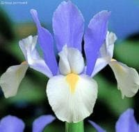 Окраска цветка: голубая с белым.Высота растения: 60 см.Особенно пышное цветение у ирисов наступает на 3-4 год. Ирисы выращиваются на одном месте до 7 лет.Из очаровательных цветов составляют букеты, которые, благодаря сдержанной цветовой гамме, уместно дарить мужчинам.